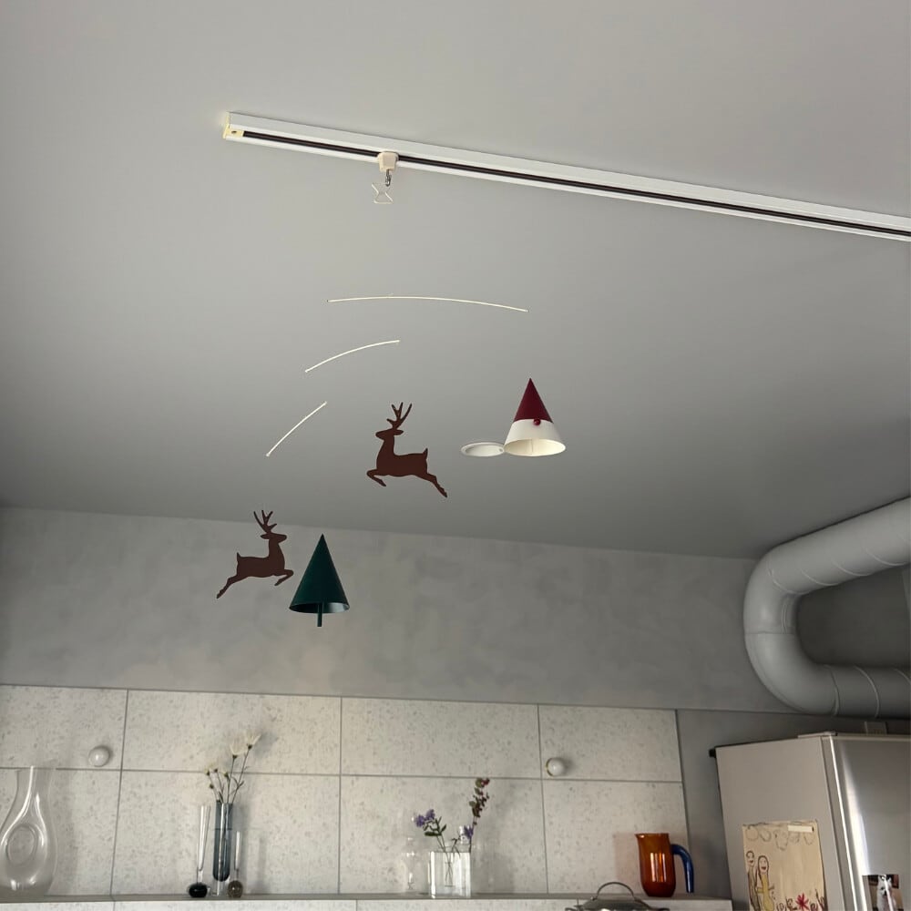 小さなお子様やペットがいるご家庭では中々クリスマスツリーを出すのも躊躇してしまいがちですが、このモビールを飾るだけでクリスマスの雰囲気をお楽しみいただけます。