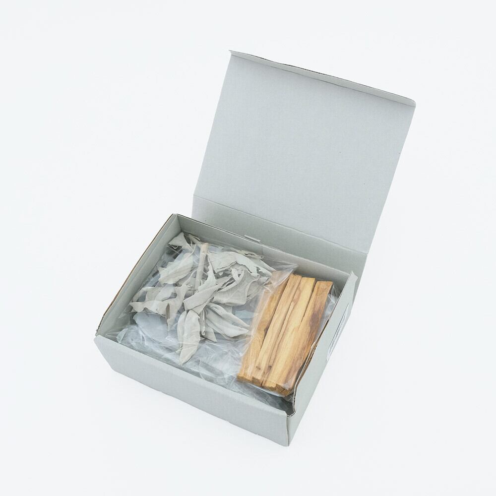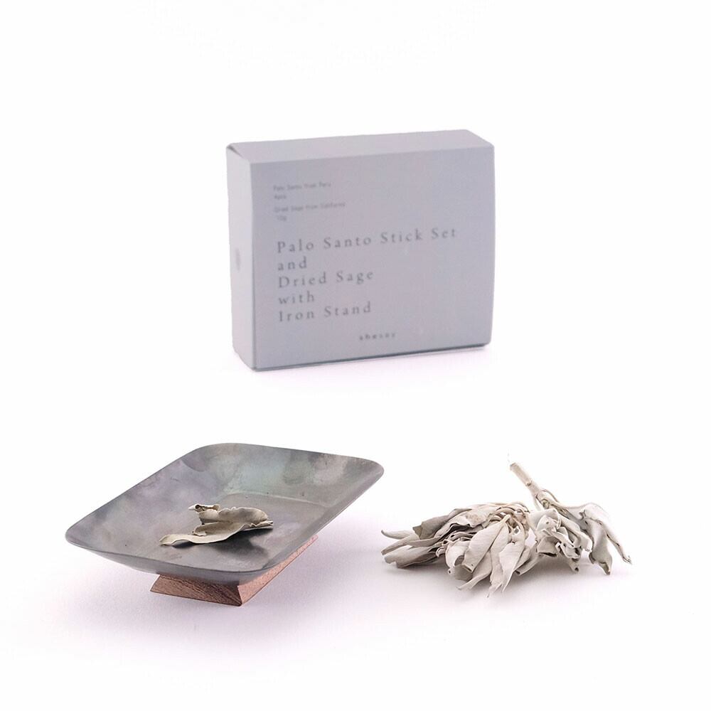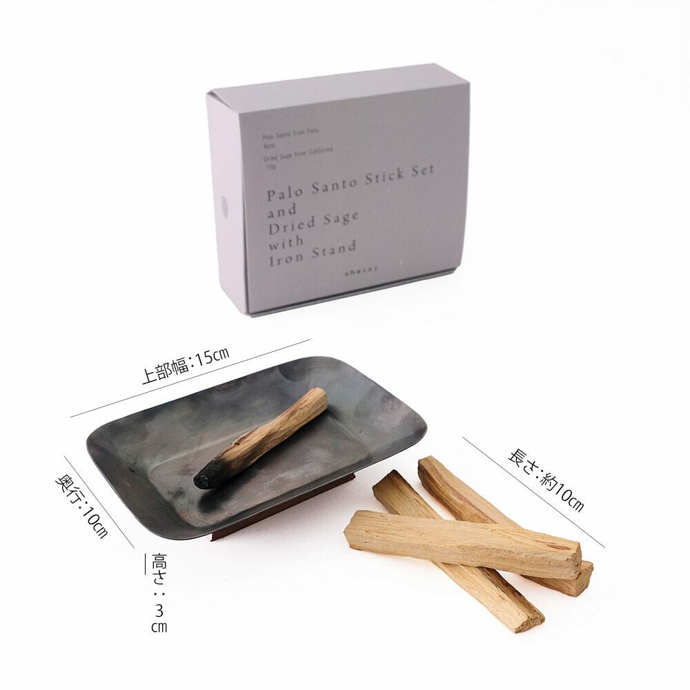 セット内容:パロサント4本+ホワイトセージ10g+アイアンと木の台