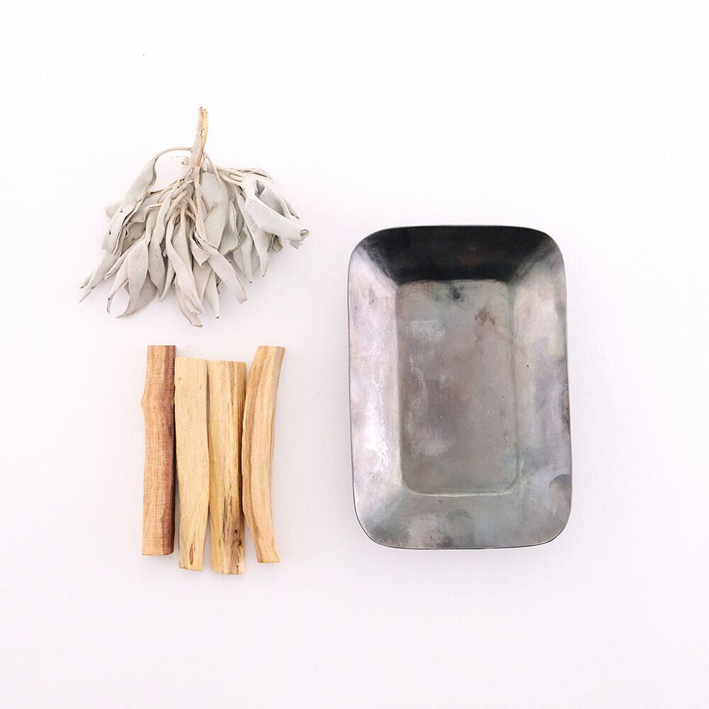 ホワイトセージの葉を1つ取り、耐熱性の器の上で火をつけます。