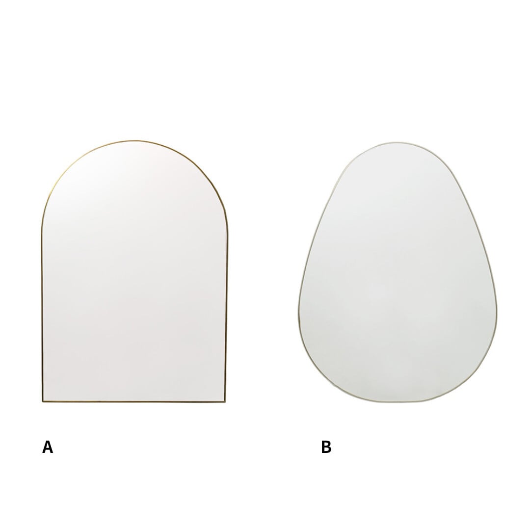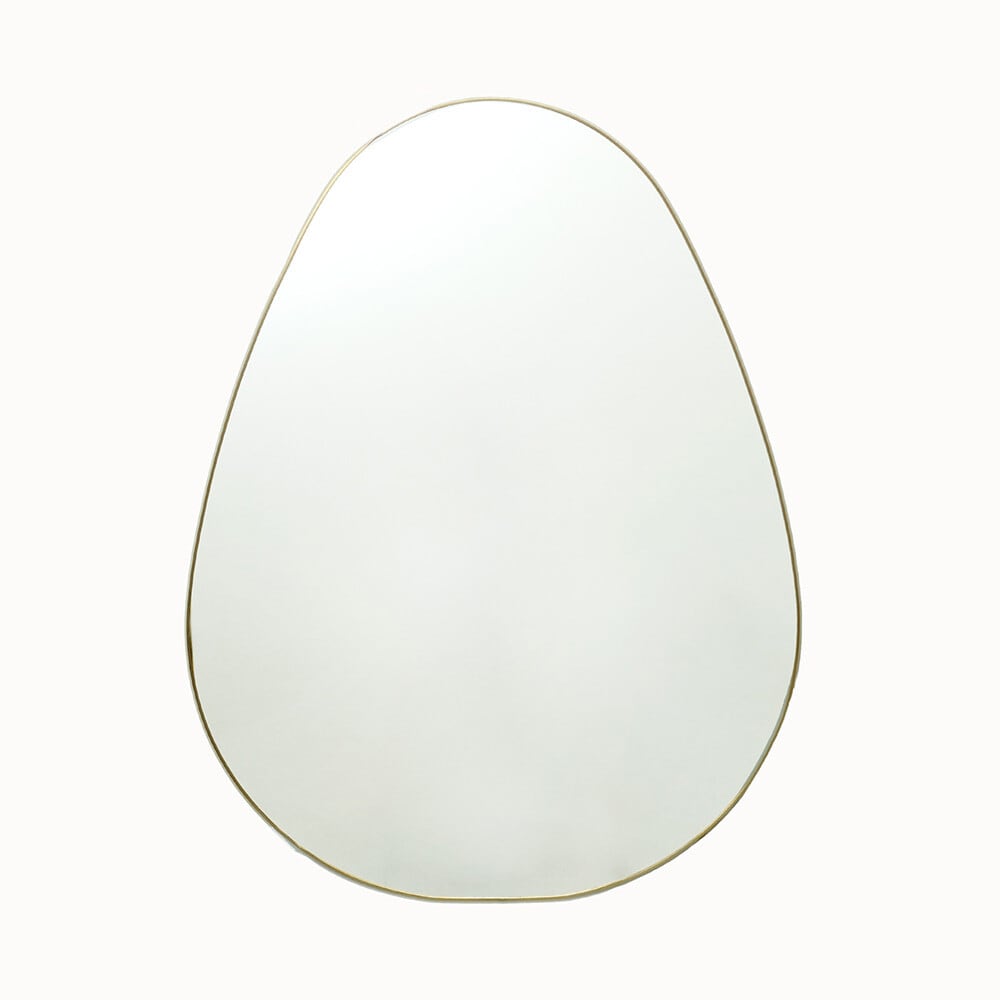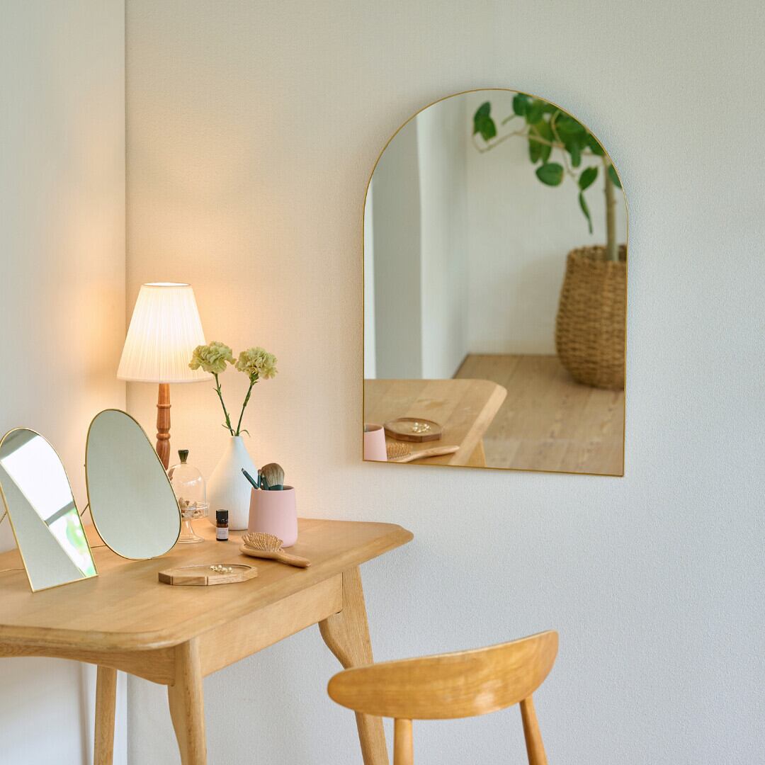 ブラスの枠にミラーをはめ込んだ壁掛け・スタンドのどちらでも使えるミラー。
