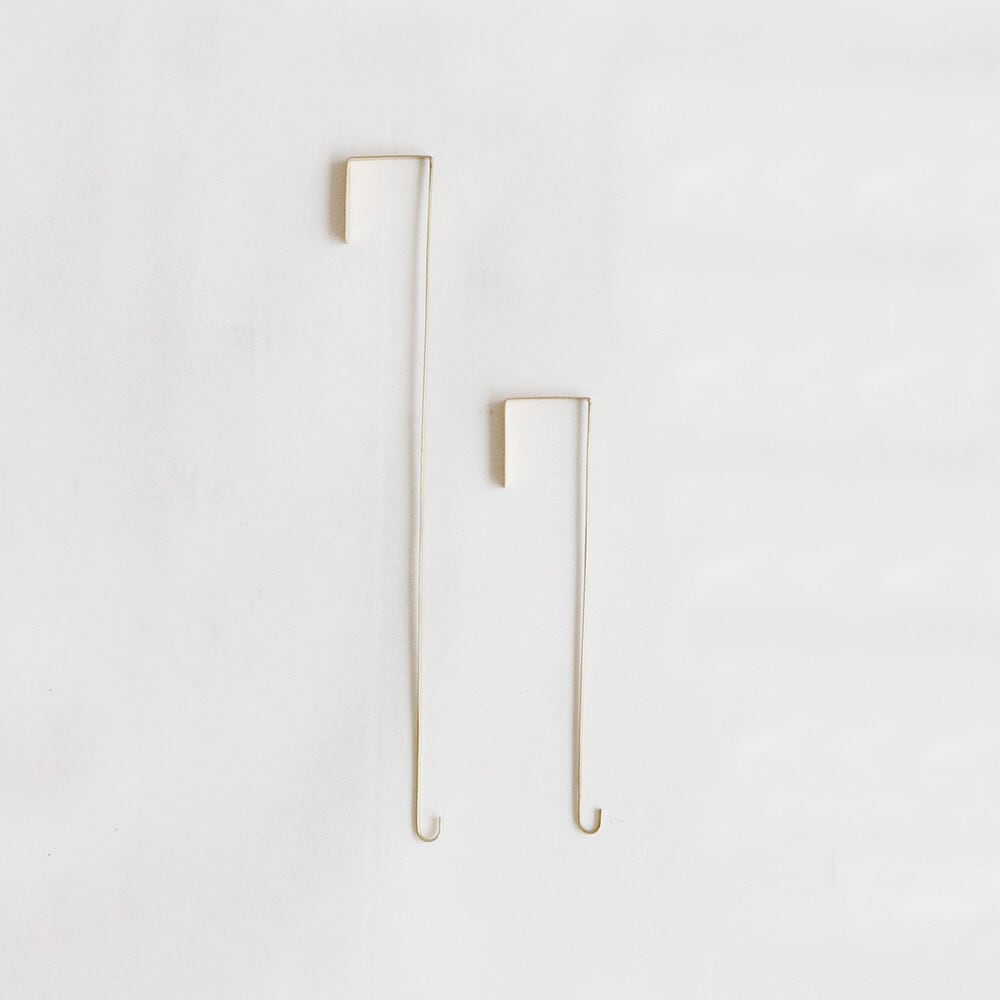 ドアに掛ける部分は真鍮の薄いプレート、フックの部分は棒状の真鍮を職人がたたいて丁寧に作られています。